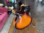 The G3900 features an arched laminated maple top, back, and sides, which contribute to its bright and articulate sound. The semi-hollow body design ensures a balance between the warmth of a hollow body and the sustain and feedback resistance of a solid body. The sunburst finish, along with its vintage-style F-holes, gives it an elegant and timeless look, while the binding and distinctive Gretsch appointments enhance its visual appeal.